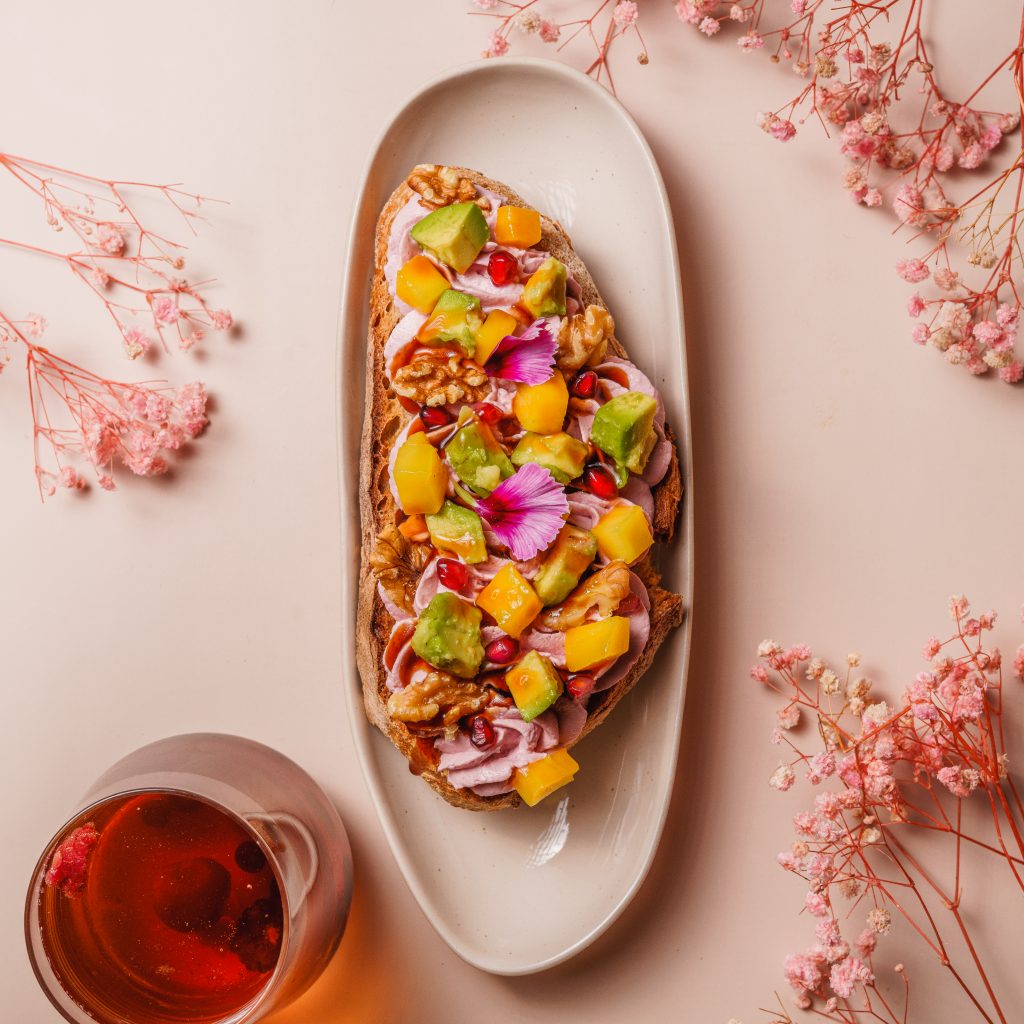 Savourez nos toasts gourmands, préparés avec des crèmes florales maison, du saumon mariné, de l’avocat, de la mangue ou de la grenade. Parfait pour un repas léger et healthy à Bordeaux, sur place ou à emporter.