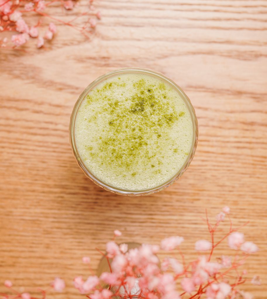 Boisson délicate à base de thé matcha japonais, veloutée et légèrement végétale.