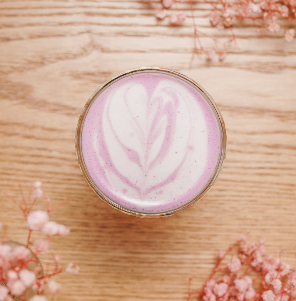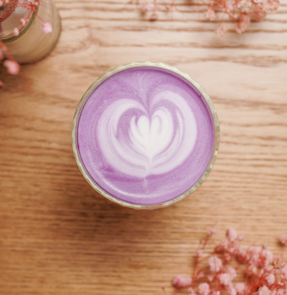 Un latte crémeux à base de racine d’igname violette des Philippines, légèrement sucré et gourmand.