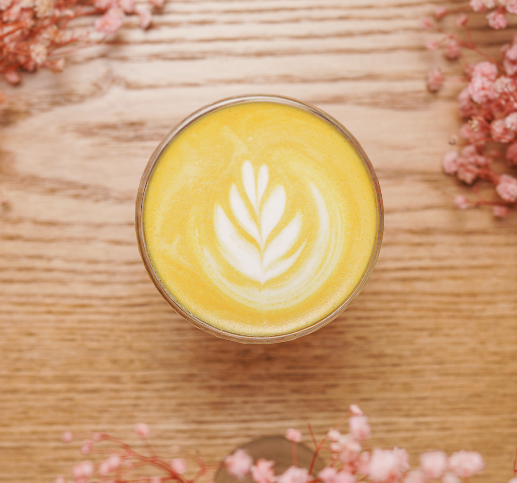 Lait doré aux épices de curcuma & gingembre, doux, chaleureux et légèrement exotique.